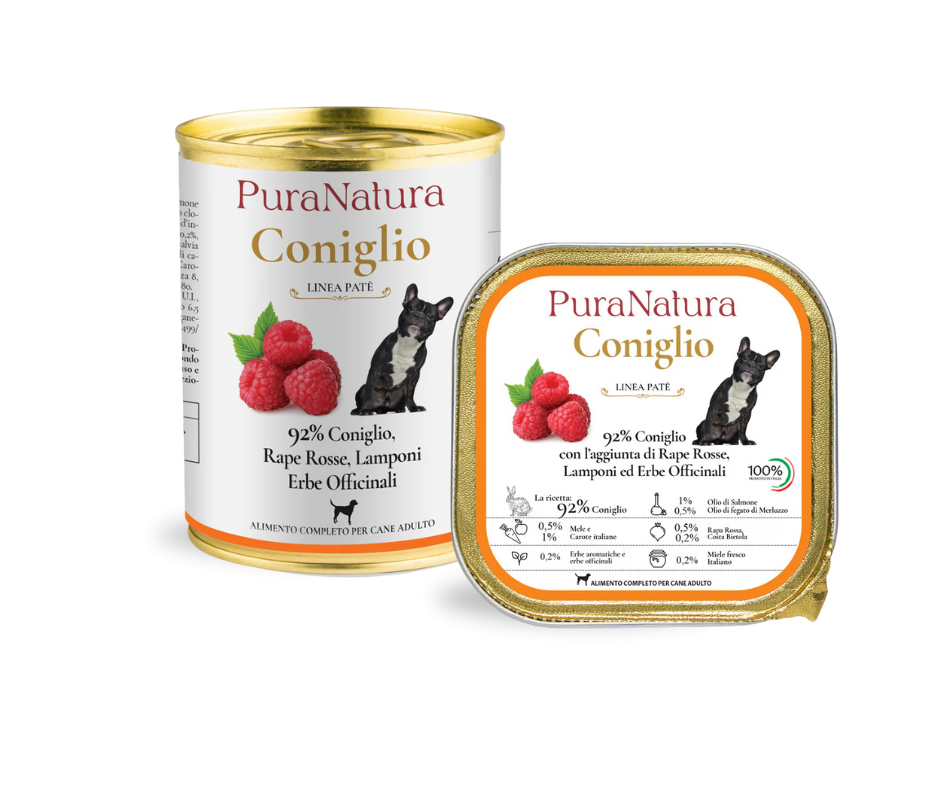 Полноценный влажный корм для собак без злаков и полностью натуральный, 100% итальянский, приготовленный из 92% высококачественной говядины, смородины, брокколи и лекарственных трав, выращенных нами органически.